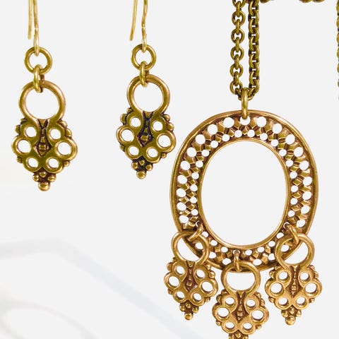 Smykkesæt i bronze. Smykkeserien Treasure. Designet fra finske Kalevala Koru.