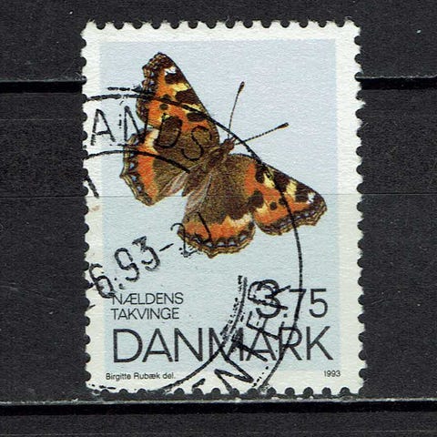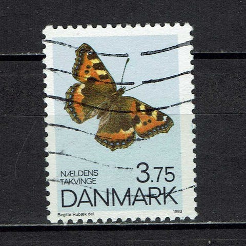 Sommerfugl. Blå plet i øvre højre hjørne. Ukendt arkplacering, men kan optræde enten som nr. 2, 4, 6, 8, 10.