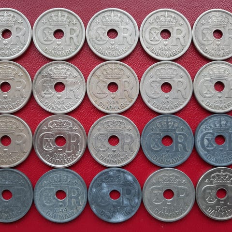 Danmark, Christian X, 10 øre, kobbernikkel eller zink.