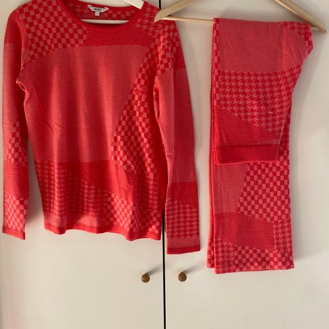 Sæt, Kriss, str. S, Marineblå m.fl., 50% uld/30% bomuld/20% akryl, Næsten som ny, Sælger dette super flotte uldsæt i flotte farver bestående af jakke og nederdel. Sætter, der kommer fra røg- og dyrefrit hjem, sælges til en AFHENTNINGSPRIS af KUN kr 350 - ved forsendelse tillægges porto.