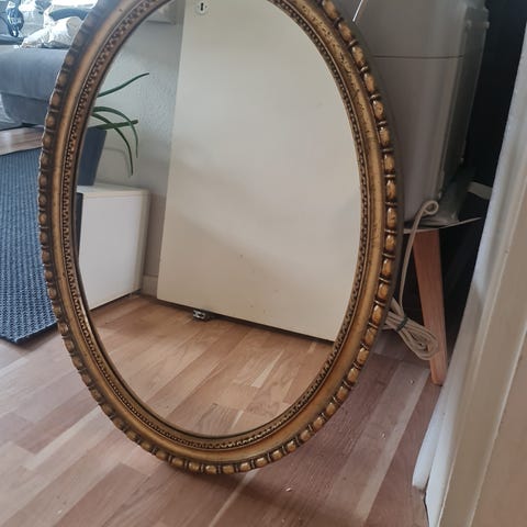 Spejl med dekorativ guldramme i træ
