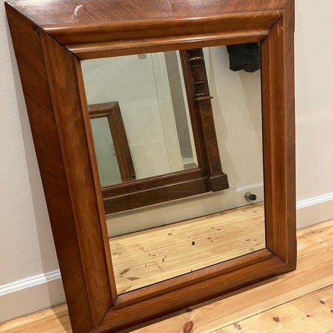 Flot gammelt lyserødt spejl med guldkant. Målene ses på billederne.