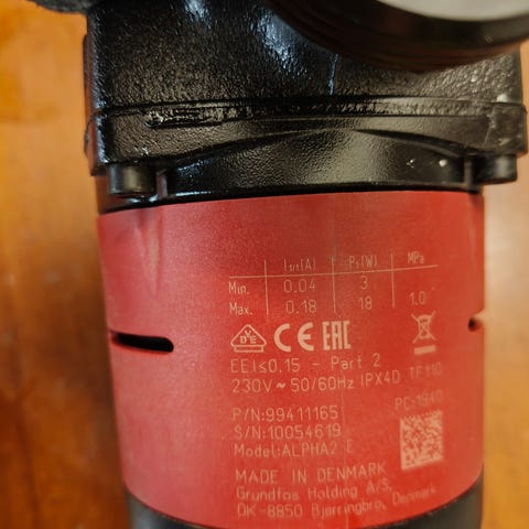 Varmepumpe, Grundfos, Pumpehus fra Grundfos Alpha2. Størrelse 25-xx 180
