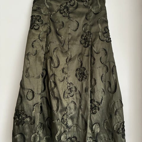 Beige silkestrik halvlang- sort halvlang begge med elastik i taljen og slids str. 40/42 Pris 50 kr pr. Stk