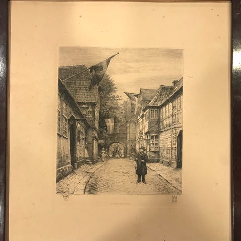 Tryk, Kleinsorg, Max Peter Johan, motiv: Sejlskib i Nyhavn, 1914, Gammelt billede af kendt motiv, med ramme - trænger til rengøring.