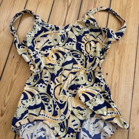 Har tilhørt min mor som er 80 så ægte retro :-) Med støtte til barmen. Str. er anslået ud fra min størrelse.