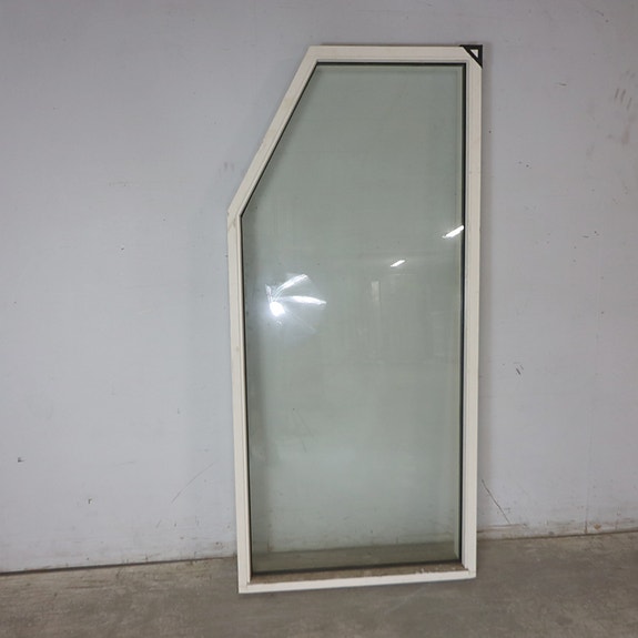 Bondehusvindue i træ/alu med 2-lags energirude, anverfer og stormkrog. Der er udfræst not i bunden for bundstykke. Elementet er beskidt og genstand for ridser. Anverfer viser tegn på begyndende rust.