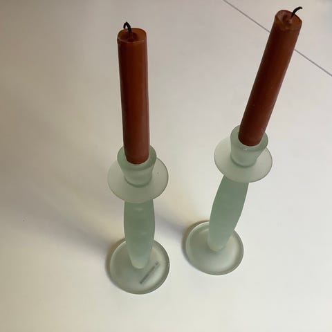 4 helt nye orange glasstager fra IKEA. Der er 2 af hver.