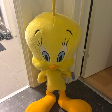 Daffy duck måler ca 60 cm fra 1999 har lomme med velcro lukning i ryggen.