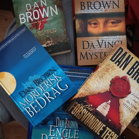 Dan Brown bøger: Da Vinci Mysteriet, Det Forsvundne Tegn og Engle og Dæmoner. Alle bøger er på dansk og tilhører genren thriller og mysterium. To bøger i hardback og Engle og Dæmoner som softcover. Prisen er for alle tre. Ønsker du at købe enkeltvis er prisen 40 kr. pr. stk.