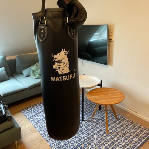 Boksepude til børn. God stand ingen brugs-mærker. Hængsel til ophængning i loft medfølger.