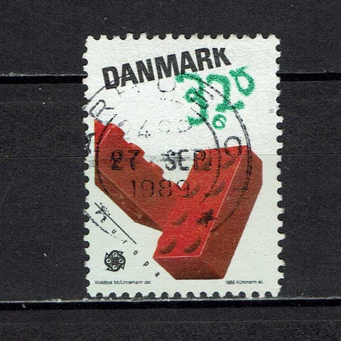 Europamærke. Sort plet over MA i DANMARK. Ukendt arkplacering.