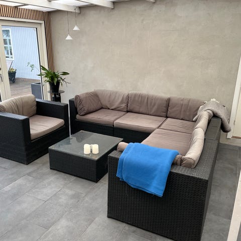 Hynderne er bleget af solen og sofahynden har 1 lille hul.