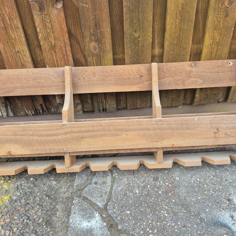 Håndlavede svævende hylder i fyrretræ til vin og vinglas. God stand/ingen fejl/Ingen brugspor. Desværre passer de ikke ind i vores nye hjem...