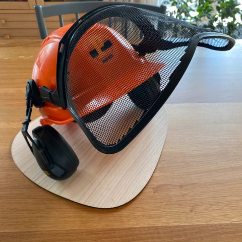 Dette er et par høreværn, der bruges til at beskytte ørerne mod høj støj. De har en rød plastkonstruktion med en sort bøjle og sort polstring på ørekopperne. Høreværnene er designet til at sidde komfortabelt over hovedet og dække begge ører fuldstændigt, hvilket hjælper med at minimere indkommende lyd og beskytte hørelsen.