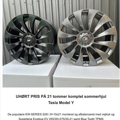 Billigt - 21 tommer Tesla Y --> Sommersæt TIL KUN 14.995 - SKARP PRIS - BILLIGT !