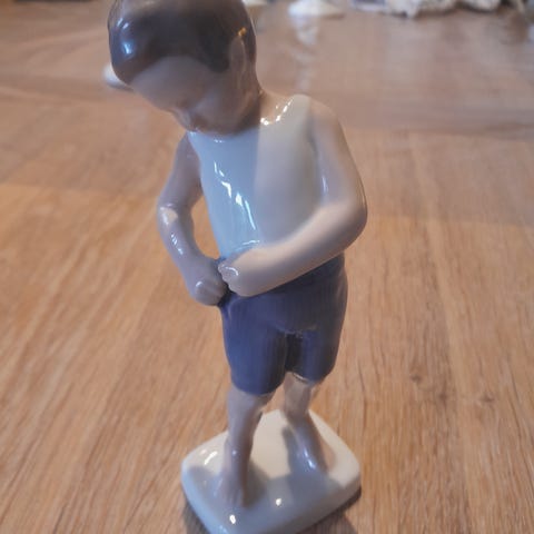 Bing og Grøndahl buksetrold. Sød figur af lille barn der knapper sine bukser.