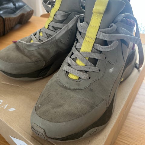 De kan godt se lidt slidte ud på billederne, men har kun haft dem på højst to gange, der er noget ligegyldigt gummi under der ikke har ku holde til ret meget som man kan se, men jeg fik de to par af firmaet og købte et tredje par da jeg ikke kunne passe de her to