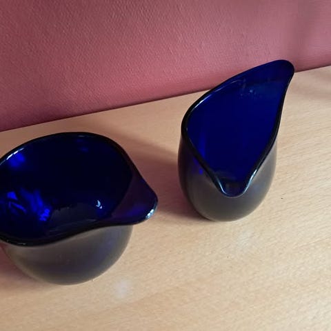 Koboltblå "Vipstjert" flødekande designet af Per Lütken ca. 1960.