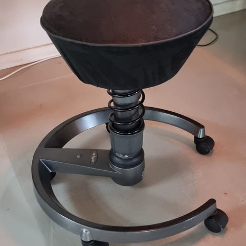 Sælger en Swopper Comfort+ i sort betræk. Stolen er kendt for sin unikke, aktive siddestilling, hvor du automatisk træner balance, ryg og core, mens du arbejder. Perfekt til både hjemmekontor og længere arbejdsdage.