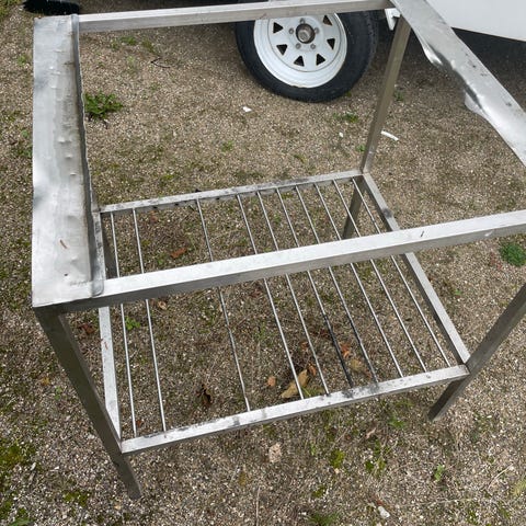 Stål stativ i rustfri stål. 240x60x50 hjul er rustne.