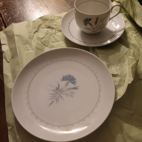 2 par kopper med underkop og desserttallerken,