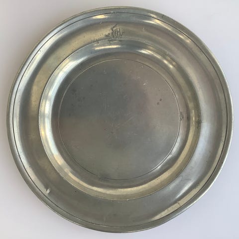 Tintallerken med initialer og stempler – antagelig tysk, 1785