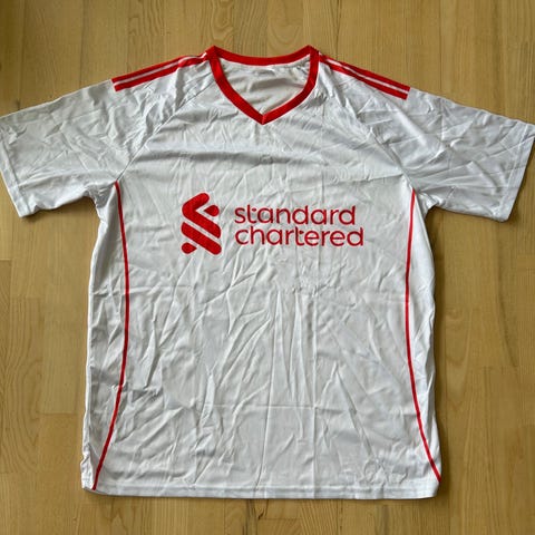 Fodbold T-shirt i rød farve til herre. Kopi Liverpool i str XL.