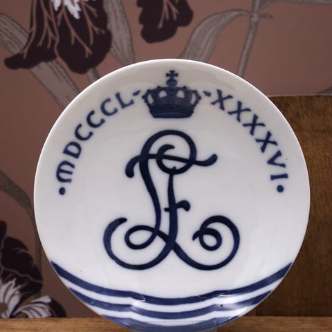 Dronning Louises 80 års dag. Oval platte med konet ramme I relief.