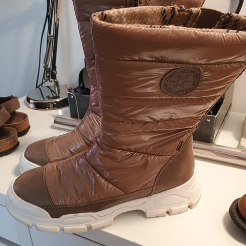 Til ældre eller andre der har brug for en bred støvle der er let at tage på. Den er foret og ubrugt, fejlkøb. Ny pris 1300, se billede. Evt hentes på Islands Brygge