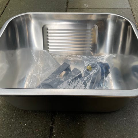 Vask fra baggårdsmiljø ved boligcareer som blev renoverede. Støbejern med emalje. Nok snart 100 år gammel