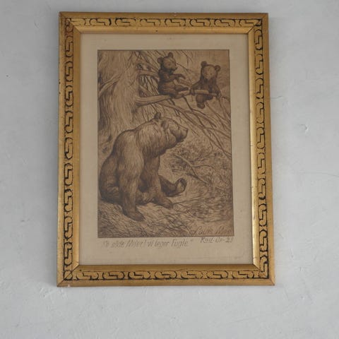 Meget fine originale raderinger, indrammet i A4 egetræs- glasrammer med grøn syrefri passepartout (farven falmer ikke)
