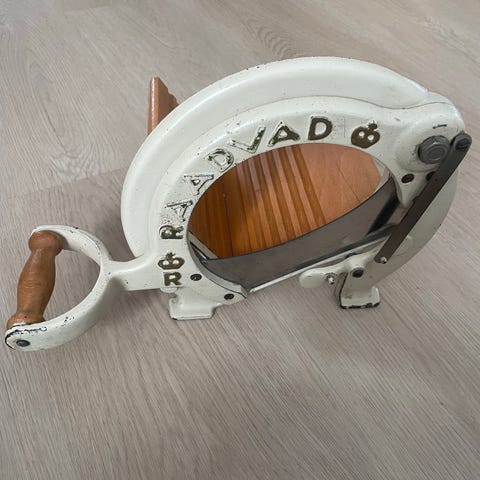Helt nyt. Vi købte det, fordi vi skulle bruge pølsehornet, så det følger ikke med.