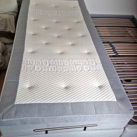 To madrasser til Dunlopillo seng, hårdhed fast. De kan enten lægges i et dobbelt madrasindlæg eller bruges som to delte madrasser. Madras overtrækket er fra nogle andre madrasser end Dunlopillo.