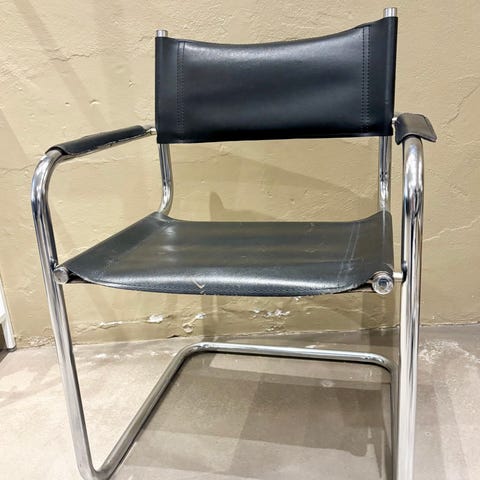 Frisvinger med armlæn og flot hvid læder sæde og ryg.