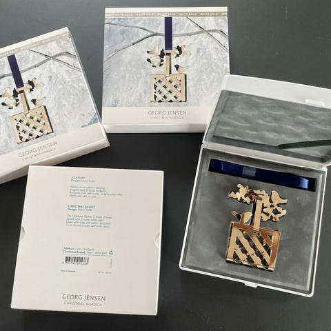 Georg Jensen Jule Kugle julepynt i sølv. Kuglen er designet til juletræet og leveres i original æske med rødt bånd til ophængning.