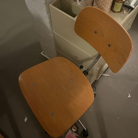 Pæn stol i fin stand med hårde hjul = bedst til gulv med tæppe ellers kan man jo bare skifte hjul.