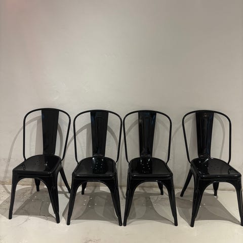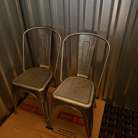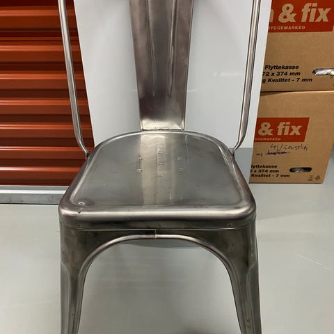 Super fede spisebordsstole i metal ala "tolix", stolene er ubrugte og kun købt ind til konfirmation, som senere blev flyttet til andet sted.