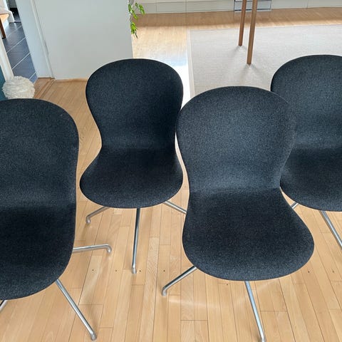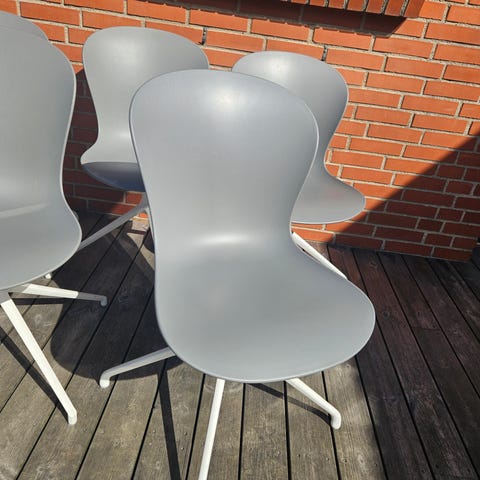 6 lækre stole fra BoConcept sælges. Prisen er for alle 6 stole. Den ikoniske og moderne Adelaide stol har god siddekomfort. Understellet er i blank krom og har drejefunktion. Skallen er hvid, og det halvpolstrede sæde er i en praktisk grå stof, som kan tørres af. Stolene er flotte, og det ses ikke, at de bruges hver dag. Eneste brugsspor er øverst på armlæn, da de rammer underkanten på vores spisebord. Se billede. Stolene sælges samlet.