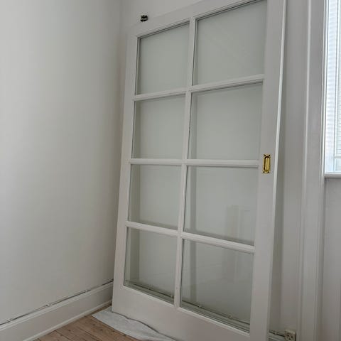 Er her brugt som skydedør, men skinne medfølger ikke.