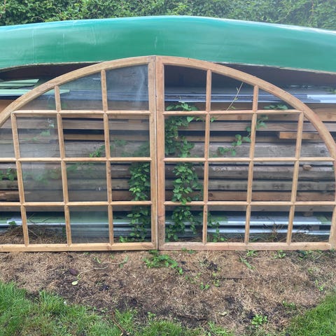 Gammelt fabriksvindue. Består af flere glasfelter med metalramme, der skaber et moderne og industrielt udtryk. Velegnet til opdeling af rum i hjem eller kontormiljøer uden at blokere for lys.