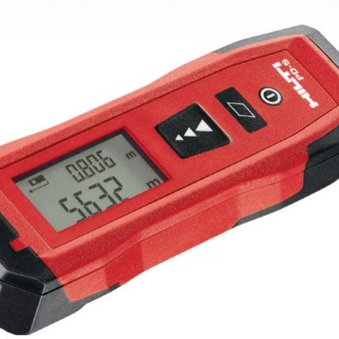 Enheden er designet til præcise afstandsmålinger og har en kompakt, rød og sort konstruktion. Produktet er velegnet til brug i bygge- og anlægsarbejde eller andre professionelle måleopgaver.