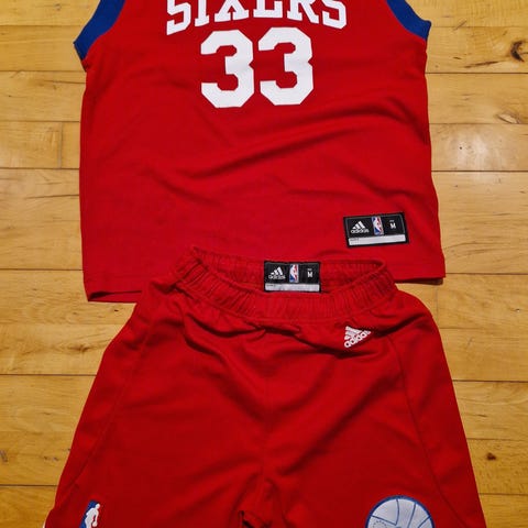 Bloggs Basketballsæt til herre bestående af en sort, rød og hvid trøje og shorts. Trøjen har nummer 85 og teksten 'BLOGGS' foran. Shortsene matcher trøjen med samme farver og nummer 85 samt teksten 'BLOGGS' på venstre ben. Sættet er designet til sportsbrug, særligt basketball.