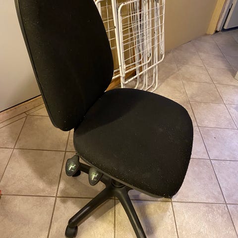 Sælger denne kontorstol. Kan hæve sænkes i højde ved tryk pind i siden så løfter den sig automatisk. Pæn / Ren sort - ingen skader.