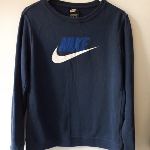 Mørkeblå sweat med lynlås, Stadig i god stand. str. 158/164