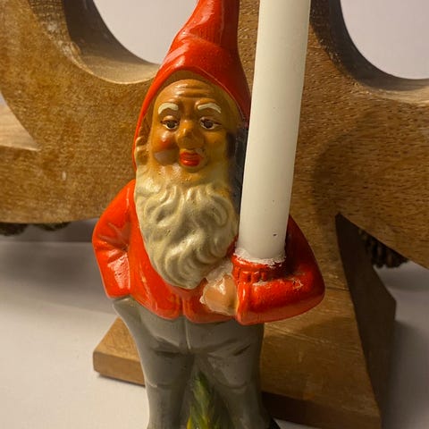 To sjældne intakte nissestager til små lys. Af keramiker Emil Ruge.