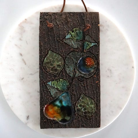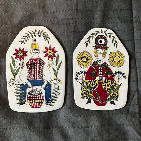 To smukke vægplatter af den Norske designer Turi Gramstad Oliver, en mand og en dame smukt malet, af keramik