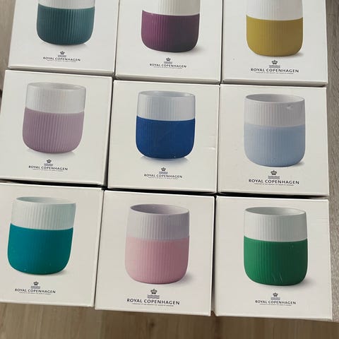 Helt nyt sæt 4 stk Royal Copenhagen 26cl hvid riflet mug termokrus.