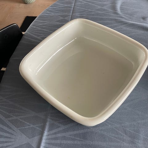 Super fint og dybt ovnfast ( ildfast) fad i hvid porcelæn uden fejl eller tegn på slid.