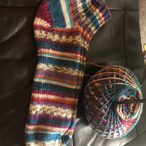 Hjemmestrikkede sokker af 75 % uld og 25 % nylon.